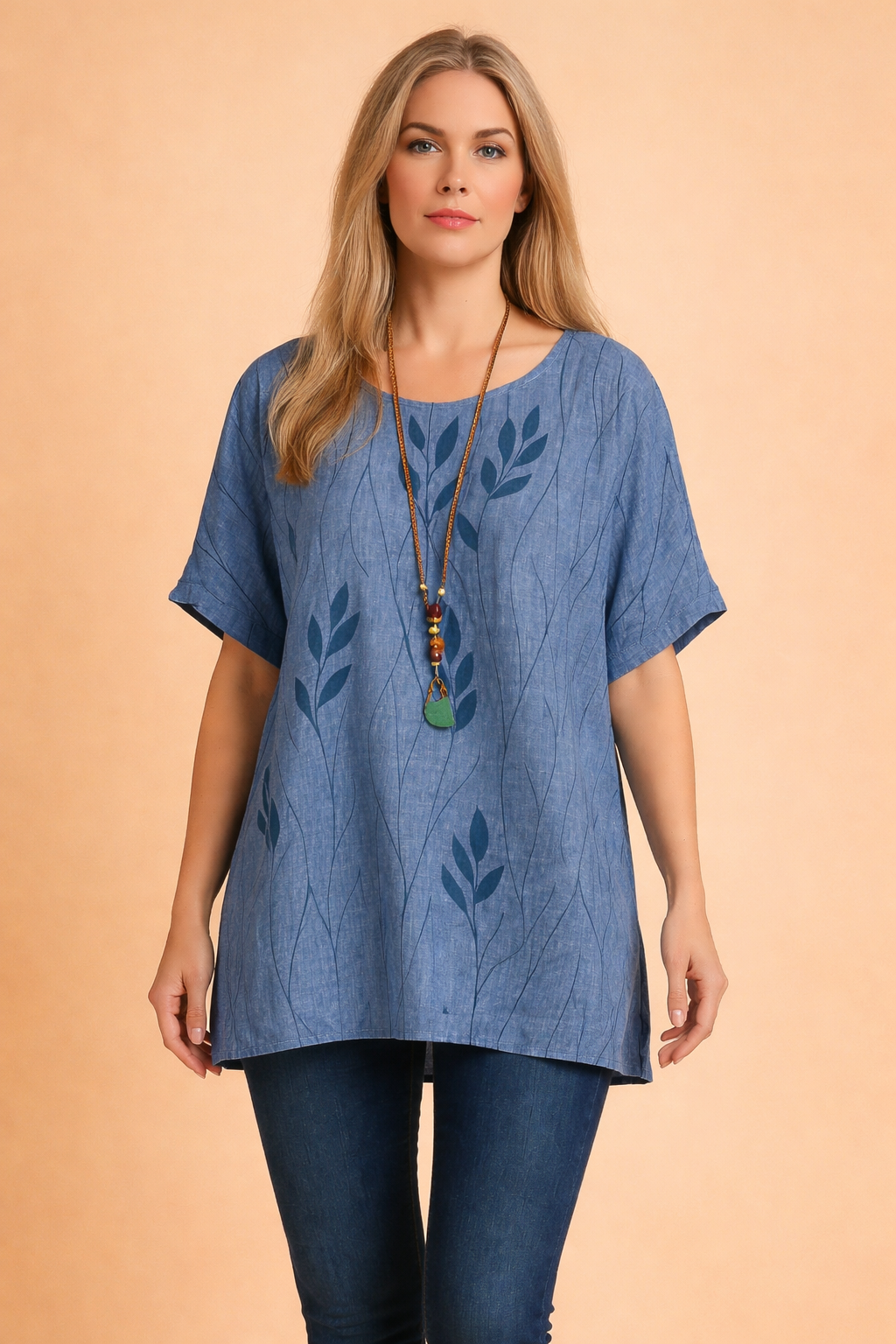Kinga | Luźny top o przedłużonym kroju z delikatnym motywem roślinnym