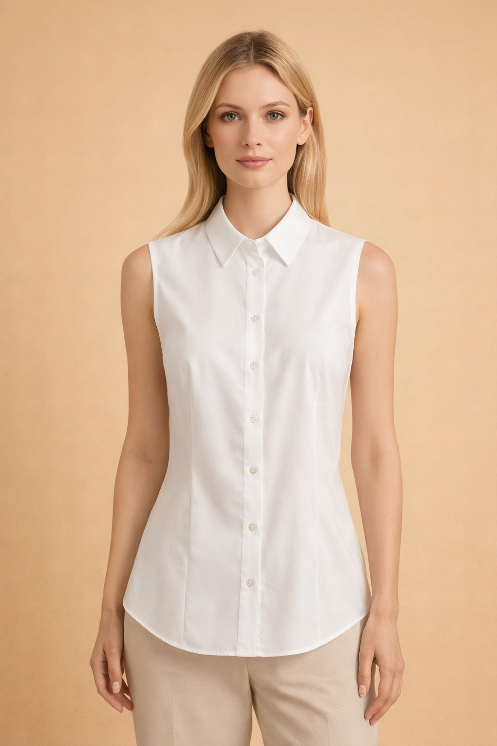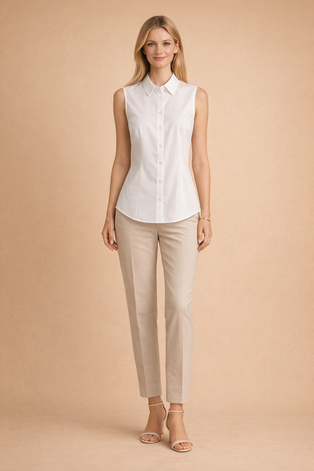 Styl na co dzień bez wysiłku. Ten top bez rękawów ma smukły i podkreślający sylwetkę krój, idealny do stylizacji codziennych i eleganckich. Zapięcie na guziki i klasyczny kołnierzyk sprawiają, że pasuje na wiele okazji.